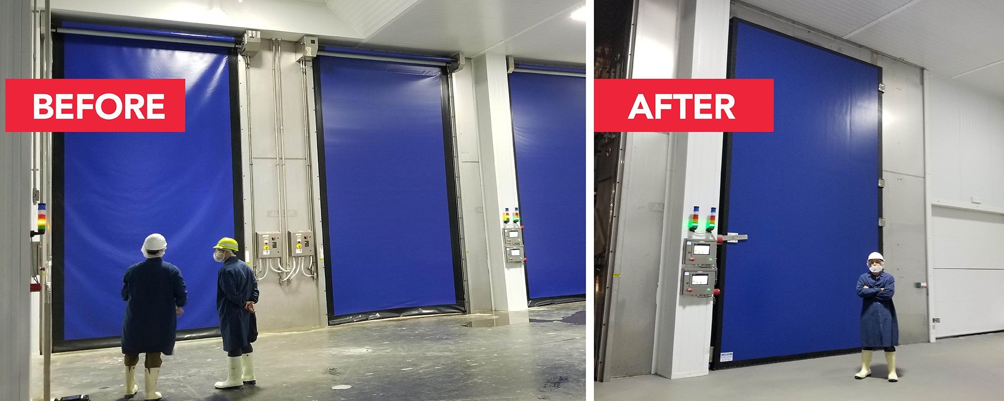 A food manufacturer was experiencing problems with the doors to their meat curing rooms. The rolling doors dripped condensation, creating a safety hazard on the floor. In addition, the excess moisture increased the risks of bacteria growth and spoilage which would both destroy the product as well as violate health and compliance regulations.